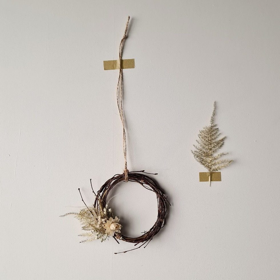 Toutes les créations de la collection de Noël Courant Vert Fleurs sont réalisées à la main en Belgique, à partir de fleurs séchées naturelles.